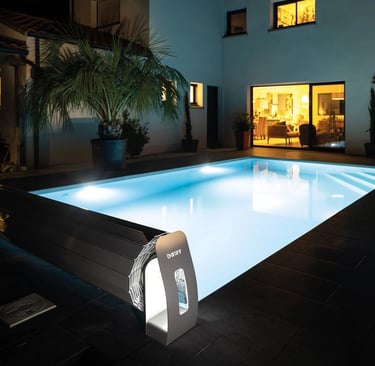 La couverture à barres est la solution "tout-en-un" idéale pour sécuriser et protéger votre bassin toute l'année. Elle remplace la bâche d'été, l'enrouleur et la couverture d'hivernage.